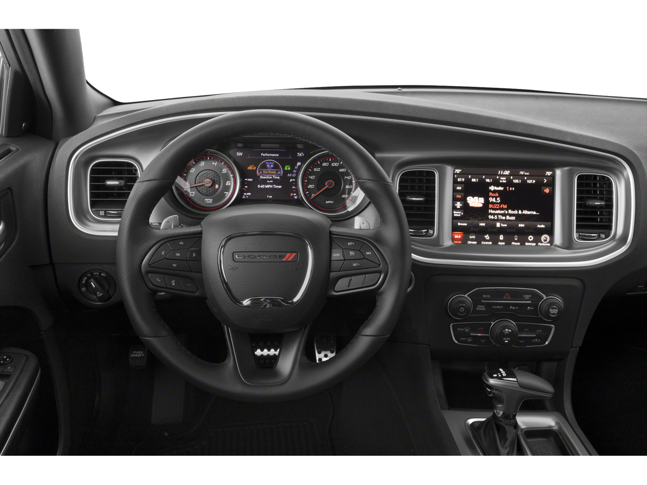 This Charger R/T Scat Pack boasts a host of standout features that elevate the driving experience. The DAYTONA EDITION GROUP adds a touch of exclusivity with its Daytona-inspired decals, Carbonite interior accents, and premium-stitched dashboard. The power-adjustable, heated, and memory-equipped mirrors ensure you'll always have a clear view, while the ventilated front seats and heated rear seats keep you and your passengers comfortable no matter the weather.