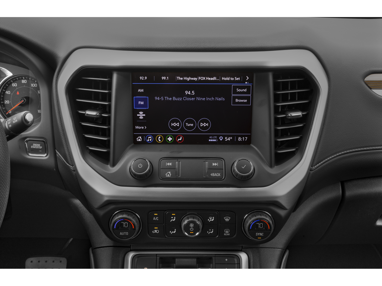 - Audio system, 8" diagonal GMC Infotainment System includes multi-touch display, AM/FM stereo, includes Bluetooth® streaming audio for music and most phones; featuring Android Auto and Apple CarPlay capability for compatible phones