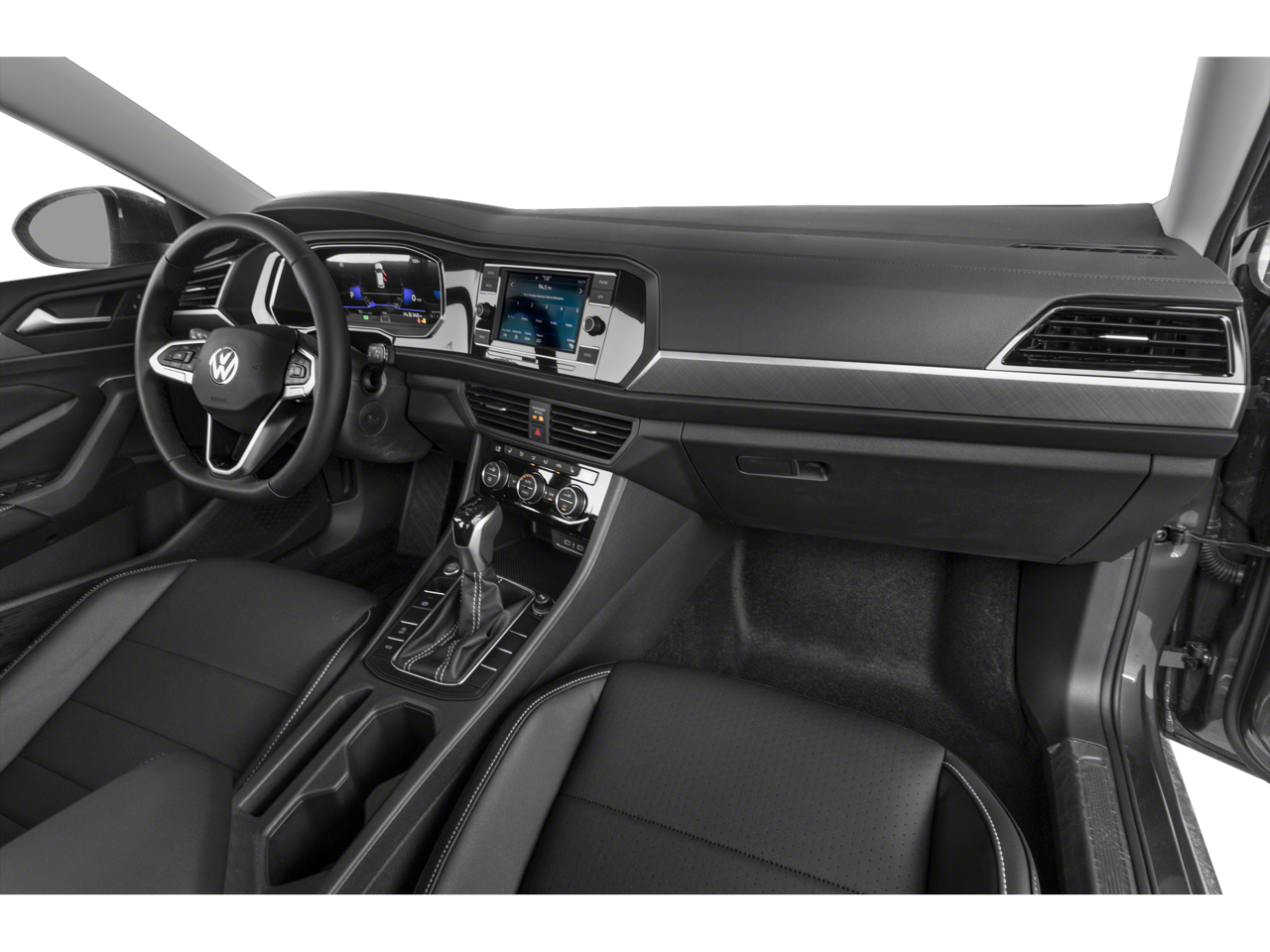 Step inside and you'll be greeted by a host of advanced technology features, including the MIB3 Composition Color touchscreen infotainment system, a rearview camera, and a suite of driver-assistive technologies like the Active Blind Spot Monitor. The Jetta's spacious interior and comfortable V-Tex Leatherette-trimmed seats provide a refined and relaxing driving experience, while the heated front seats and dual-zone climate control ensure your comfort in any weather.