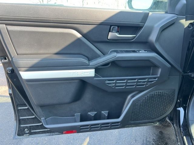 The exterior of this Tacoma is equally impressive, with a bold black paint job and 17-inch TRD Off-Road alloy wheels that give it a rugged and distinctive look. The power-adjustable and heated side mirrors, as well as the auto-dimming rearview mirror, add both convenience and style.